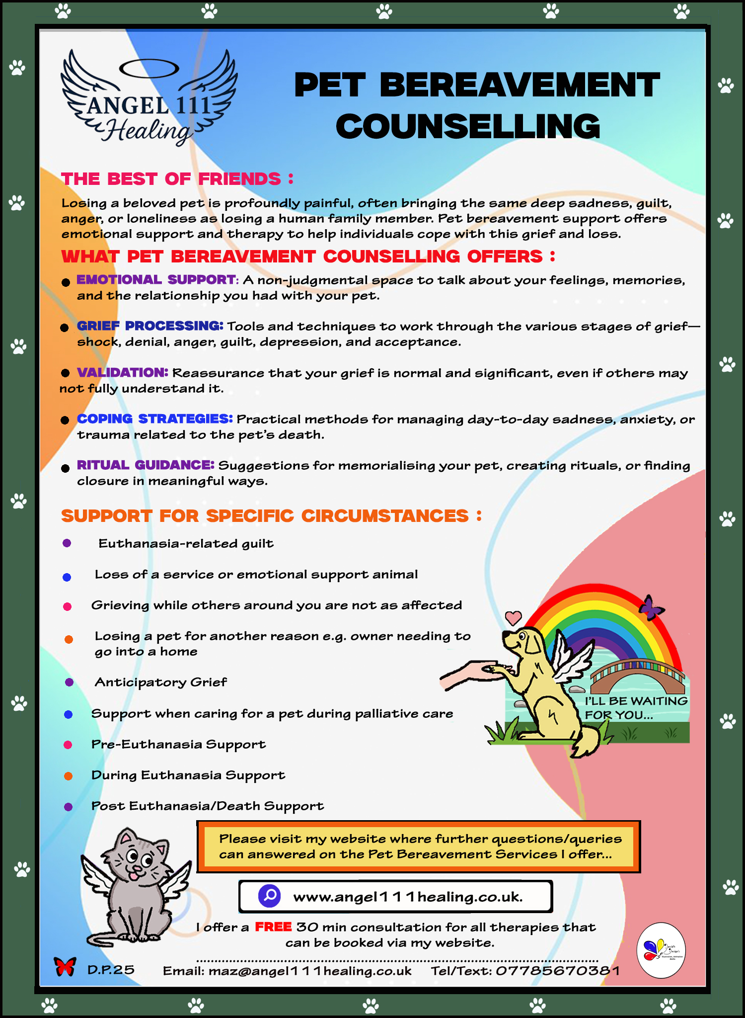 I was kindly approaced by Angel111 Healing to do a series of social media posts for their new business that they where starting up in 2025. Angel111 Healing offers Holistic Wellbeing Services for the whole family, including your furry companions. Their aim is to empower all of their clients so that they have the tools to enhance and maintain their physical and mental wellbeing in a safe, welcoming and nurturing environment.